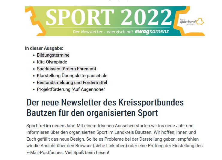 Sport frei im neuen Jahr! Mit einem frischen Aussehen starten wir ins neue Jahr und informieren über den organisierten Sport im Landkreis Bautzen.