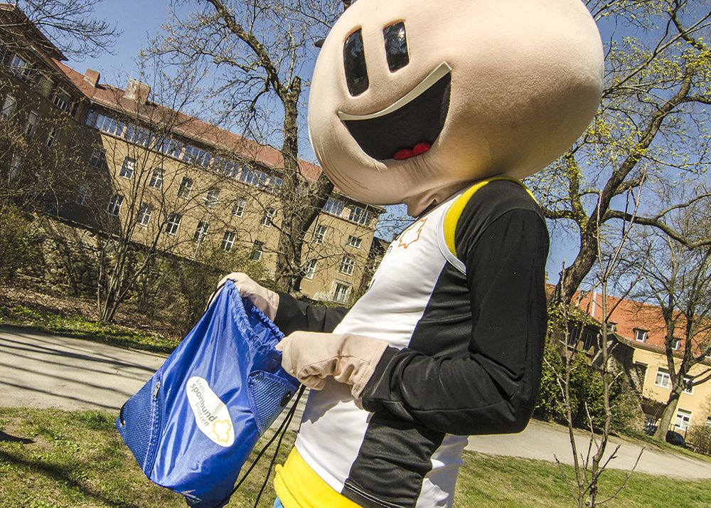 Bild: KSB-Maskottchen „Oly“ mit dem Starterbeutel