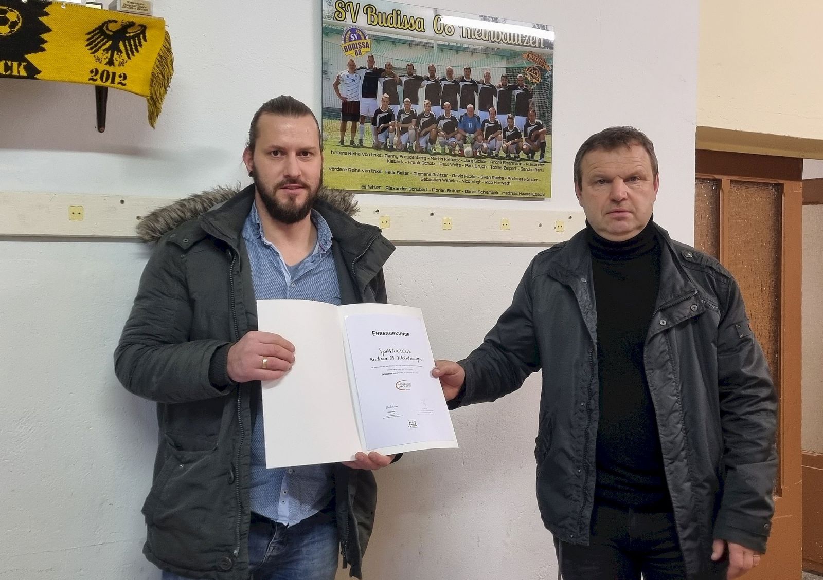 Einer der besten Wege, um Integration in die Gesellschaft erfolgreich zu gestalten ist der Sport. Für ihr herausragendes Engagement im Programm "Integration durch Sport" erhielten jetzt die Stützpunktvereine SV Budissa 08 Kleinbautzen und der Hoyerswerdaer Fußballclub HFC eine Ehrenurkunde. Sportbund-Integrationsbeauftragter Thomas Hentschel übergab diese persönlich und erkundigte sich vor Ort über aktuelle Angebote und Projekte im Bereich der Integration.