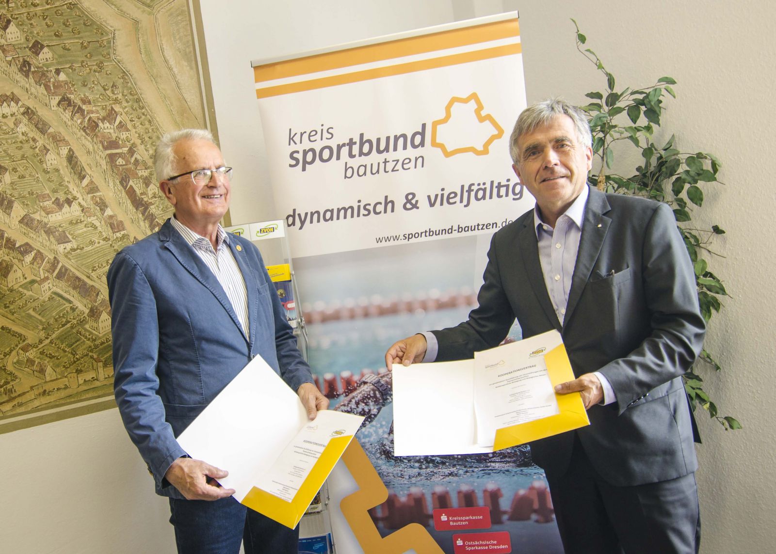 Vizepräsident Dietmar Stange (li.) mit Landrat Michael Harig präsentieren die Kooperation zum Aktivtag